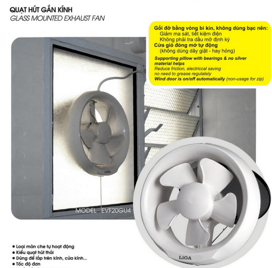 Quạt Thông Gió Lioa Gắn Kính ,QUẠT HÚT GIÓ LIOA GẮN KÍNH , QUẠT THÔNG GIÓ LIOA , LIOA