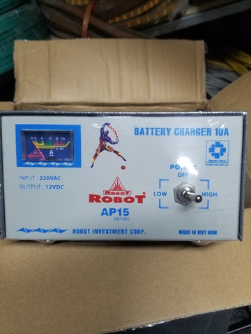 Sạc ắc quy 10A hãng robot sạc với điện áp 220v cho bình ắc quy 12v
